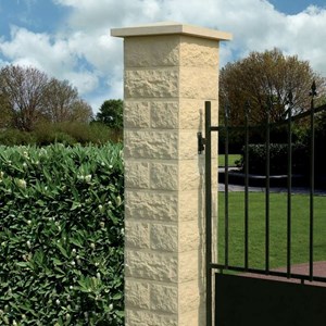 Piliers: hauteur 1,88 m (kit composé de 22 éléments 40x40 en pierres reconstituées + 2 chapeaux) - Voir photo