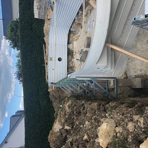 La dimension de la piscine est de 8,30 mètres x 3.65 mètres épaisseur moyenne de 35 cm.