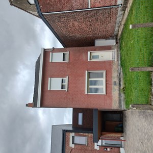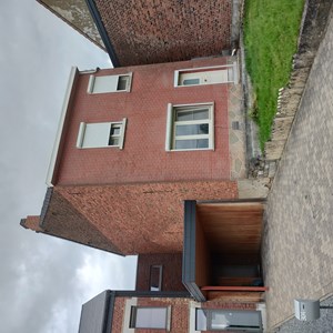 la Maison a un toit à pignon classique et la sortie de la cheminée se trouve dans le faîte du toit. Sur la sortie de la cheminée ont déjà été mis 3 plaques de couverture en béton dans le passé pour améliorer et pour empêcher les oiseaux de faire leur nid. (voir les photos)