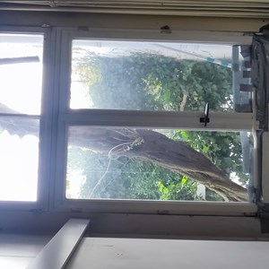 Afin de pouvoir remplacer une fenêtre dans la future salle de bain, il faut démonter une partie du mur qui est composé d'une structure en bois entièrement pourrie et la remplacer par de la maçonnerie, la partie à droite de la fenêtre est déjà en bloc et brique, on peut s'y raccrocher dessus. L'accès est facile donc pas d'échafaudage nécessaire).
